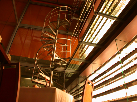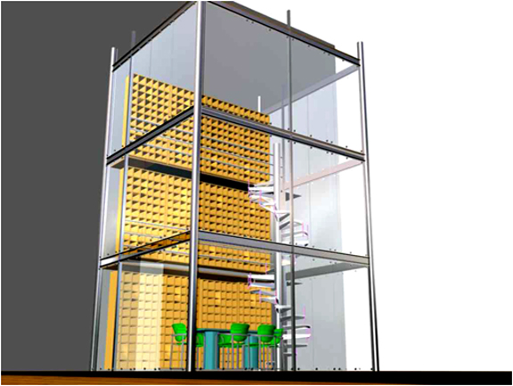 Su estructura principal es de acero inoxidable, junto con una escalera de caracol con peldaños de vidrio. La estructura interna esta sostenida con entrepaños de vidrio templado, que ayudan a contener los vinos.