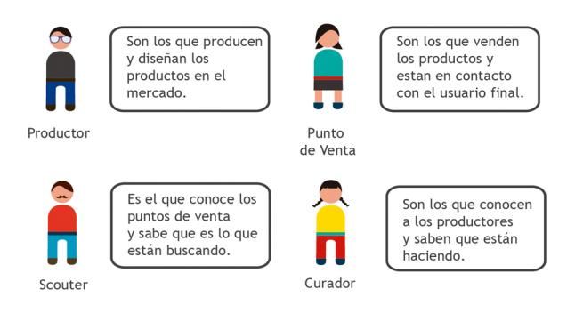 Al crear distinción y vinculación entre cuatro integrantes de las comunidades creativas. Cada uno de ellos tiene una función en la creación y comercialización de productos de diseño.