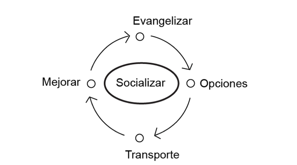 Compartir la información y transmitir la movilidad sustentable como un movi- miento ciudadano. La idea es que los mismos usuarios de los medios de transporte evangelicen la idea de una mejor ciudad y una mayor y sana convivencia mediante la movilidad sustentable.