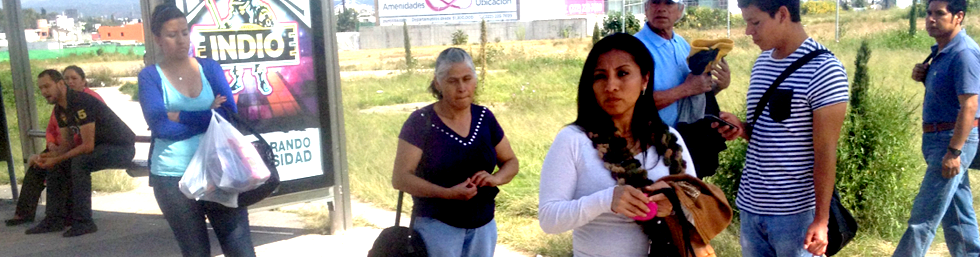 Transporte Público: En las paradas de autobuses se realizaron observaciones de las interacciones que se presentan y el comportamiento de las personas. Dentro de las interacciones están la de los checadores no oficiales con los choferes, los pasajeros con los choferes e incluso pasajeros entre pasajeros o checadores en caso de dudas sobre la ruta.