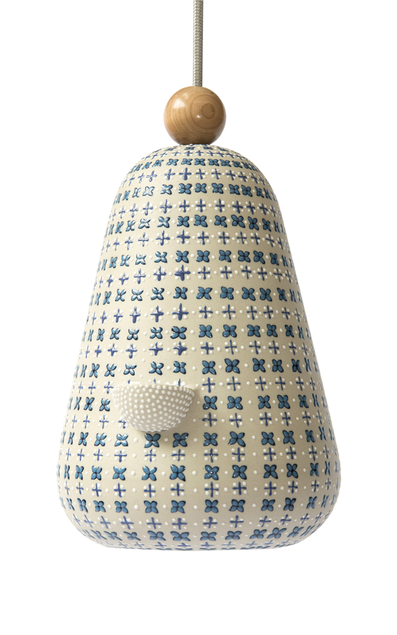 Tizana es un set de iluminación para interiores elaborado con cerámica de alta temperatura, horneada a 1240o, sin plomo, pintada a mano con patrones que evolucionan y reinterpretan la técnica tradicional de la Cerámica Servín en
